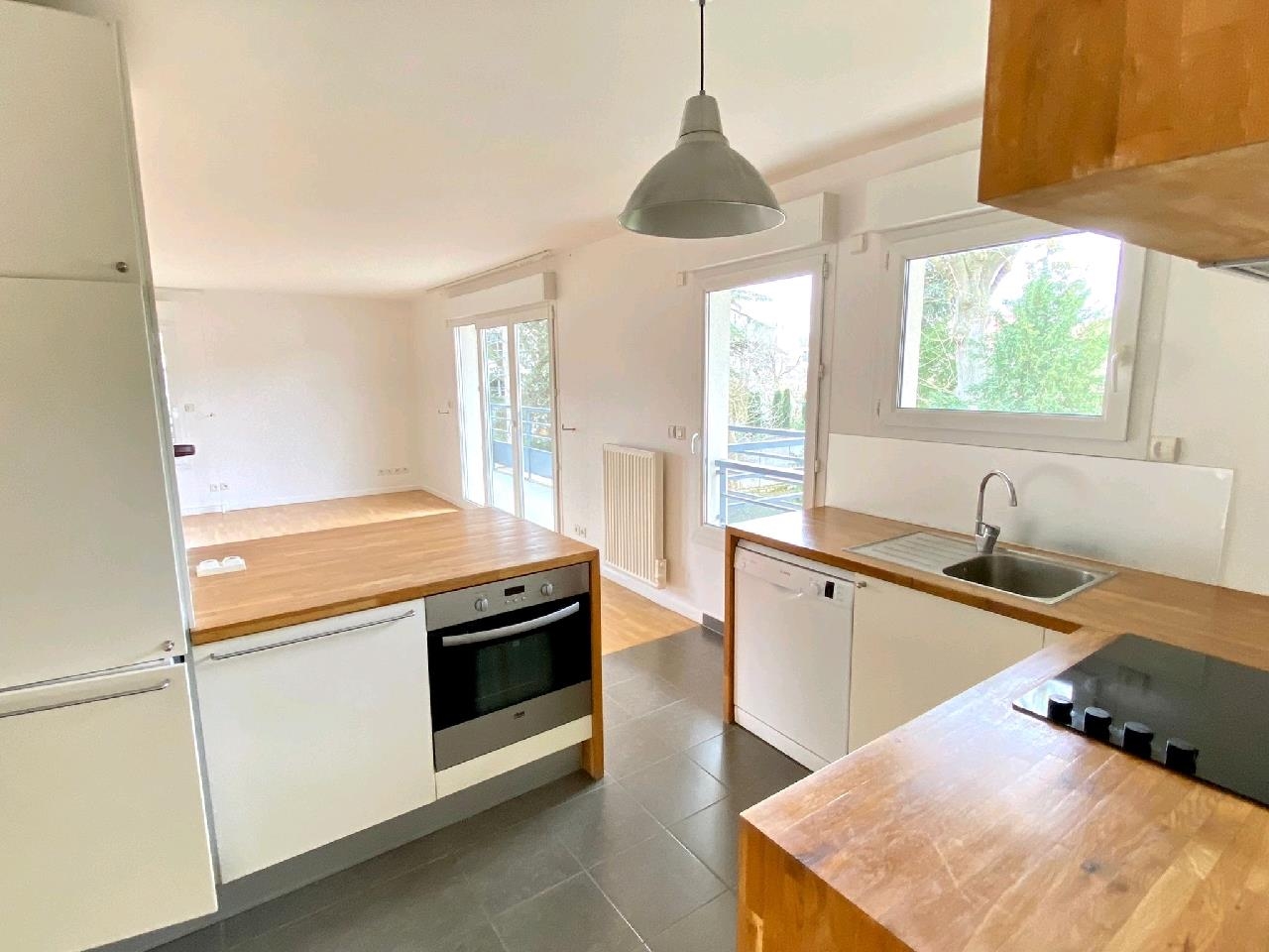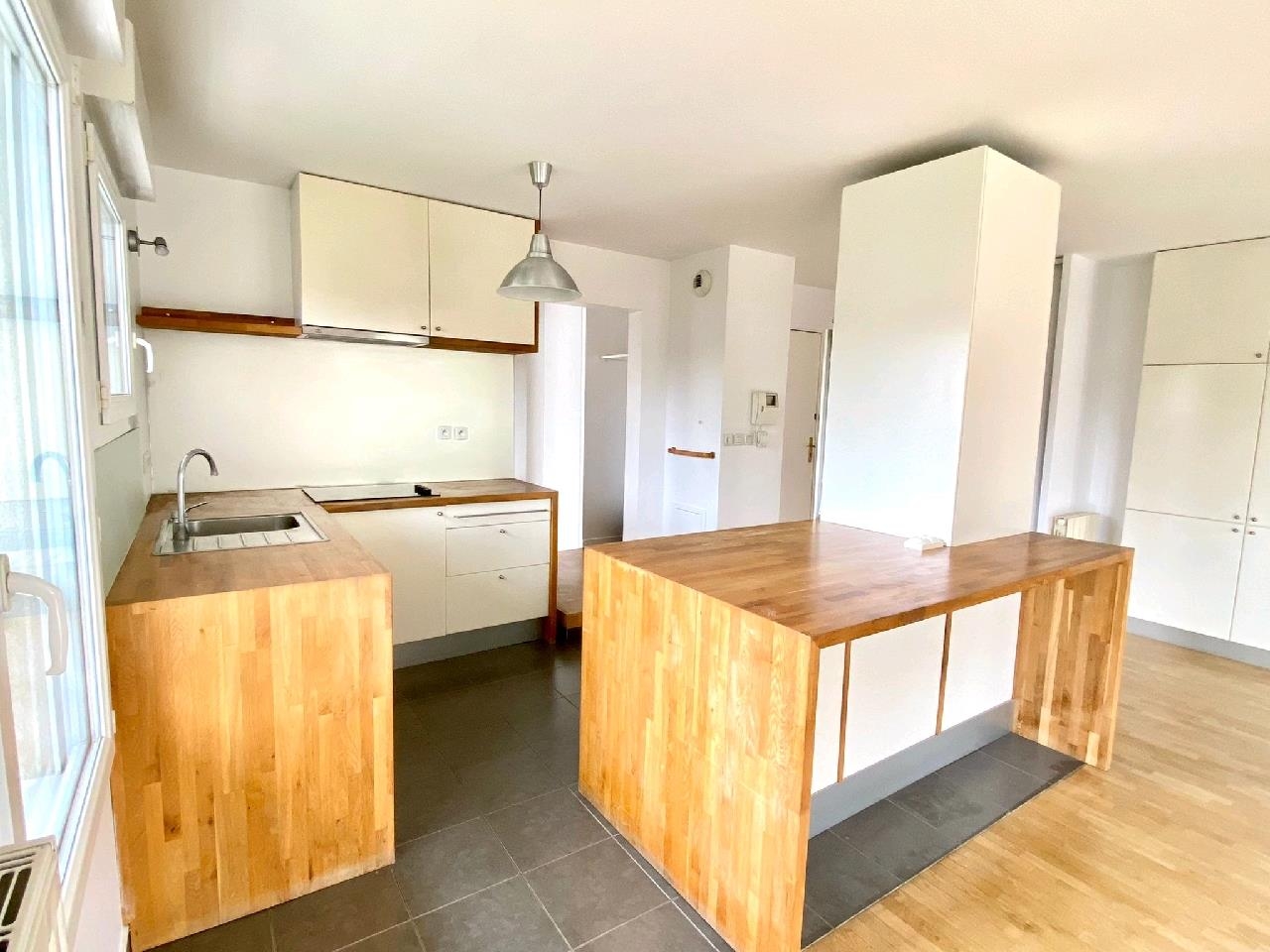Une entrée avec placards, une cuisine contemporaine aménagée et équipée (four, plaques électriques, hotte, réfrigérateur) ouverte sur un séjour spacieux de 46 m² exposé plein sud.