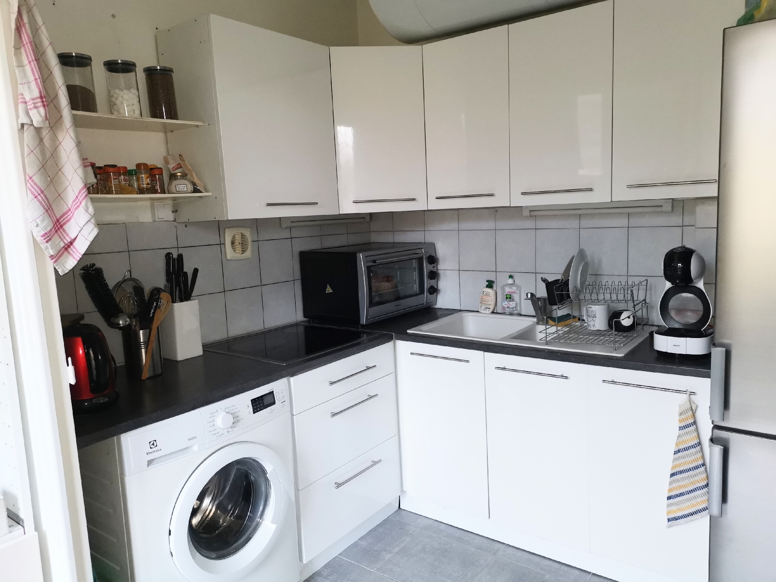 Une entrée avec placard, une cuisine aménagée ouverte sur un séjour lumineux, une grande chambre, une pièce/bureau, une salle d'eau et un WC séparé.