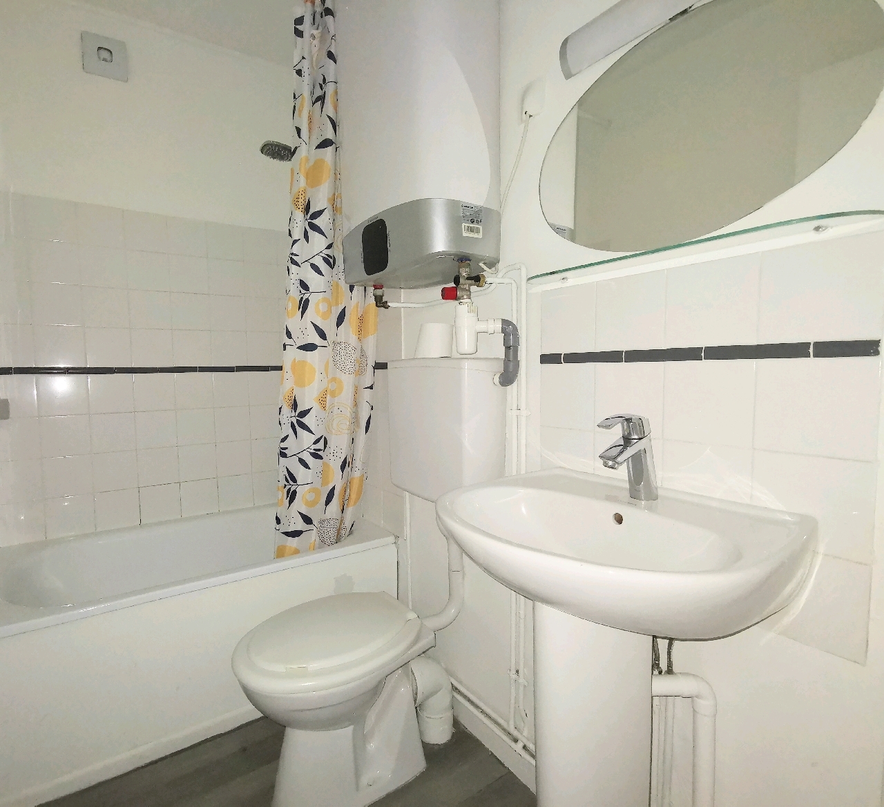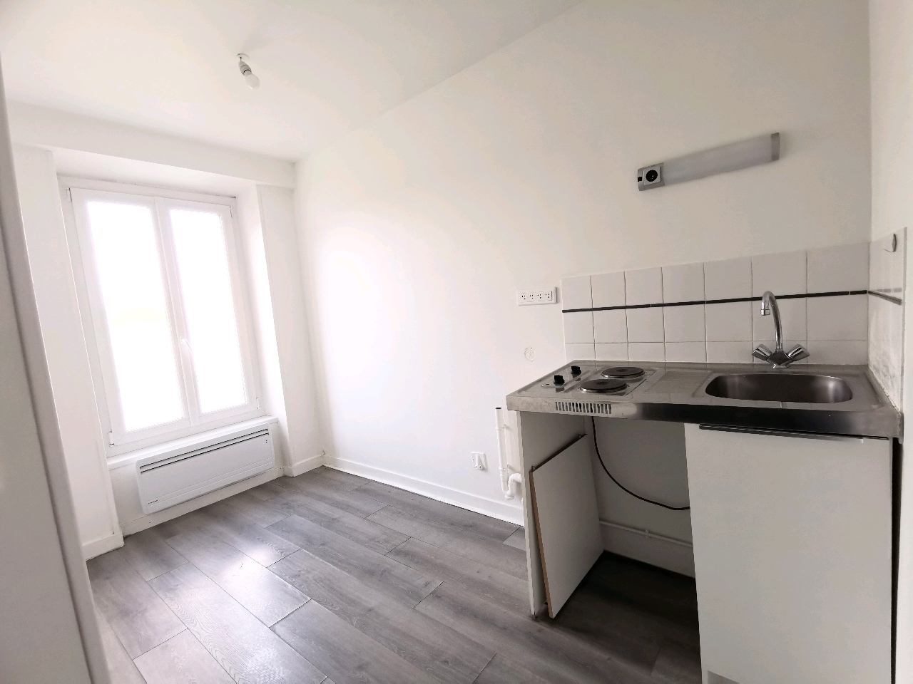 Une grande entrée, une cuisine, une belle pièce de vie, une salle de bain avec WC.